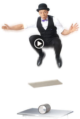 In his act, he draws upon the entire spectrum of artistry. He juggles and jumps rope while balancing on his Rola-Rola. Regardless of whether he does a handstand on his Rola or jumps off of it with a somersault, Monsieur Chapeau is always in control of this extremely unsteady artistic prop. Even a bowling ball has its place in this unique performance.
